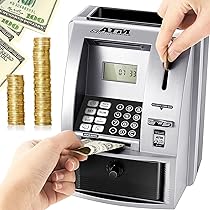 Amazon Com Mini Atm Savings Bank Atm Piggy Bank Machine Safe Atm Machine For Real Money Adult Kids Money Saver Electronic Piggy Bank Coin Cash Box Plastic Atm Bank For Coin Recognition And